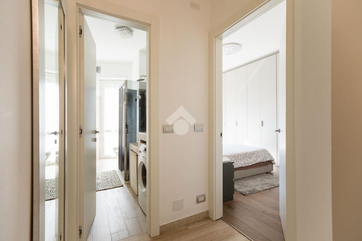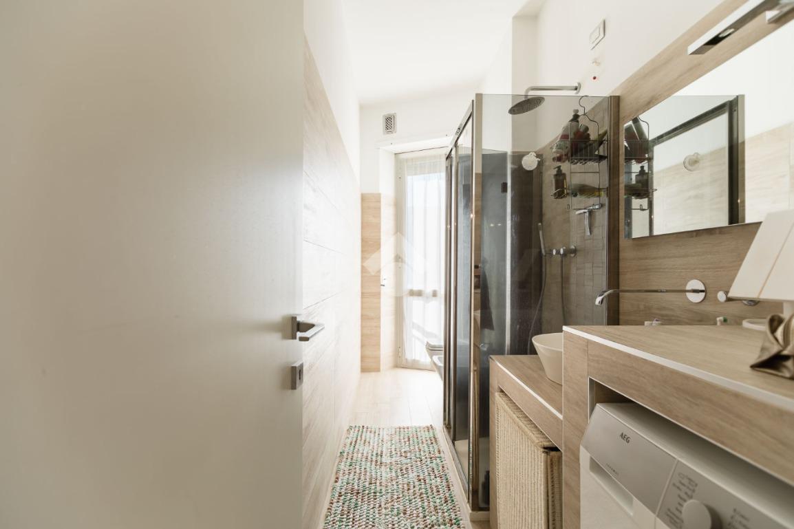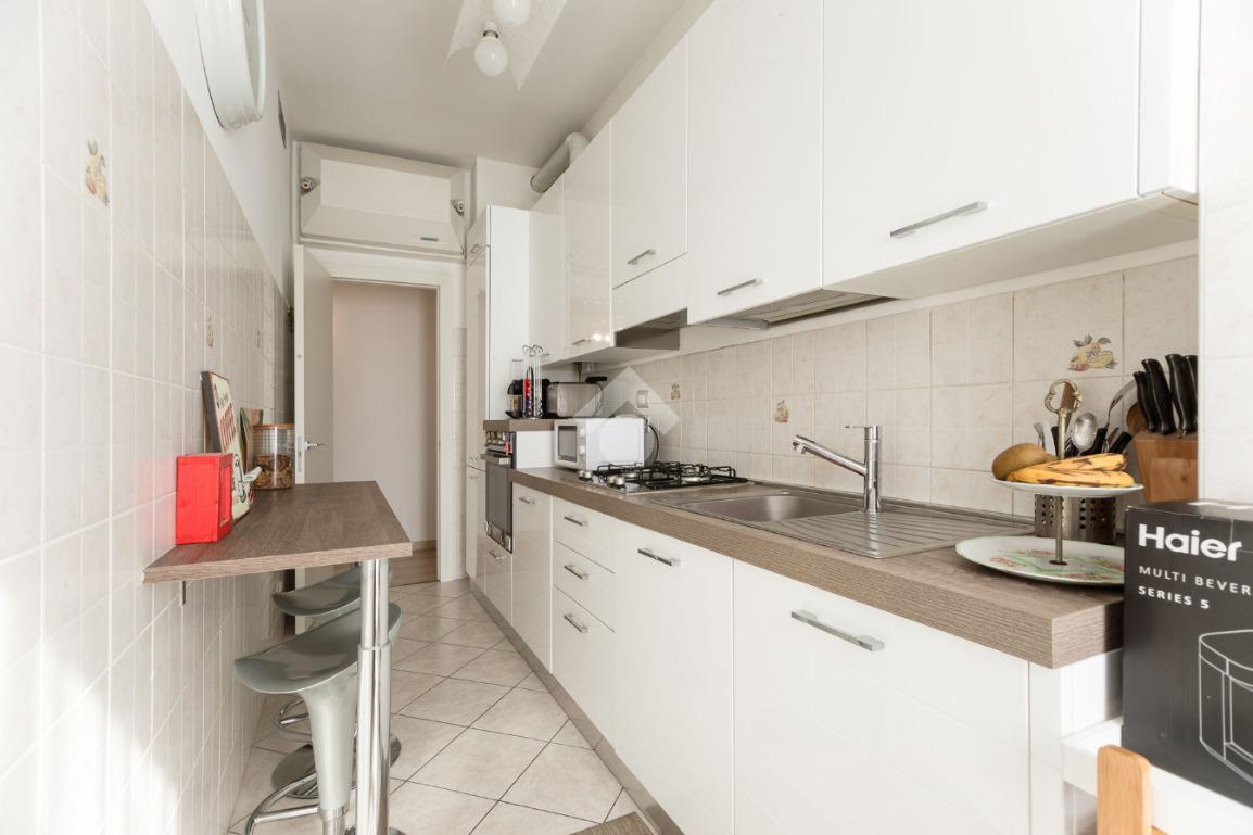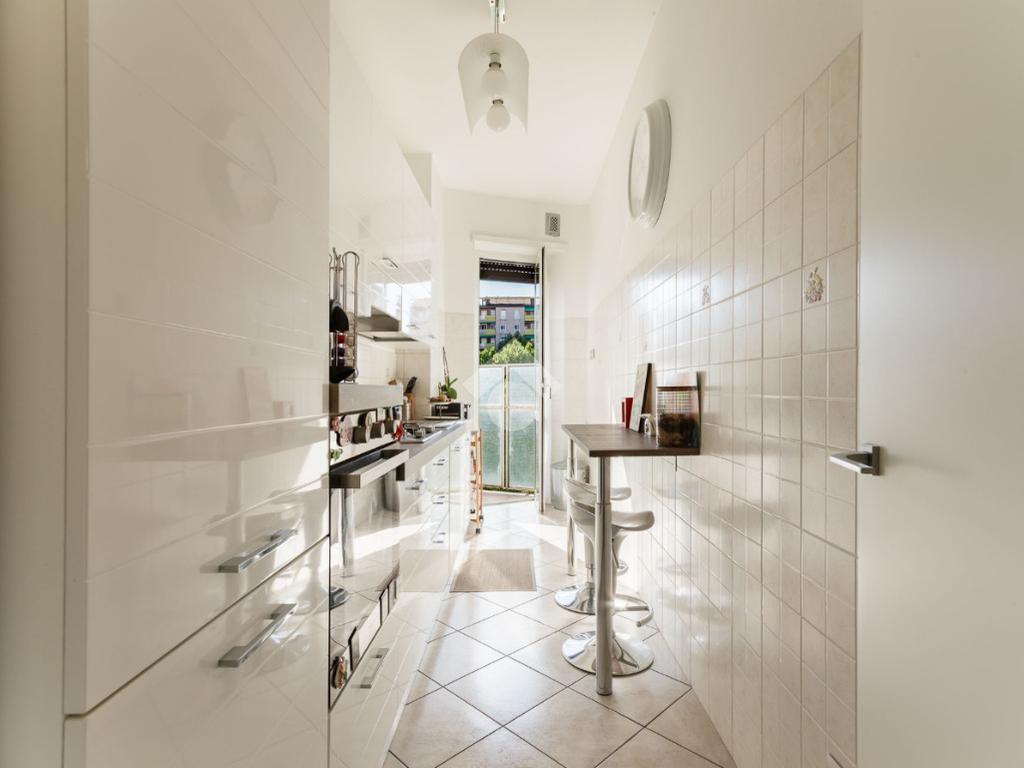 L'appartamento è molto luminoso con affaccio interno ma sul verde, esposizione molto tranquilla e gradevole.